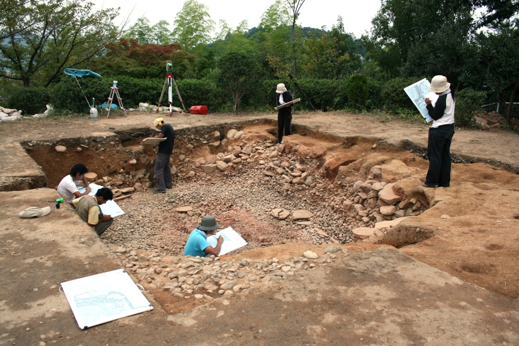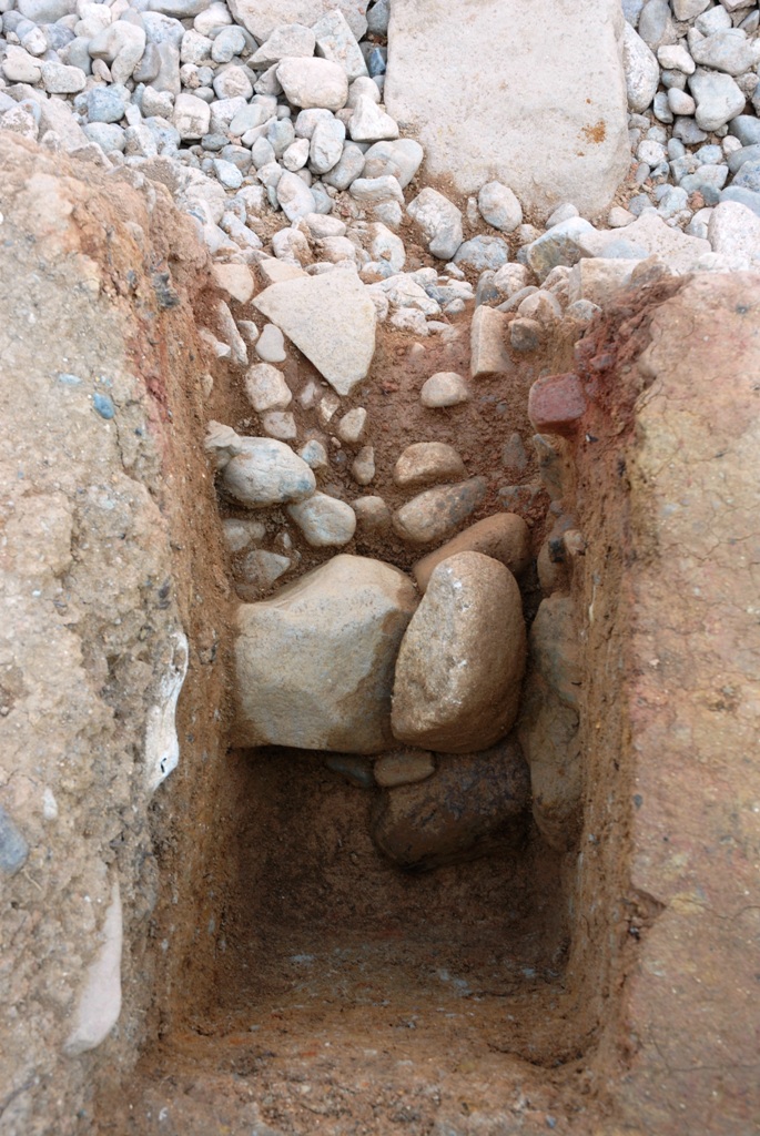 ・そして板石が全面的にしかれたかどうかは不明ながら、この工程後、棺を据え、壁体の構築に進んだと推測する。