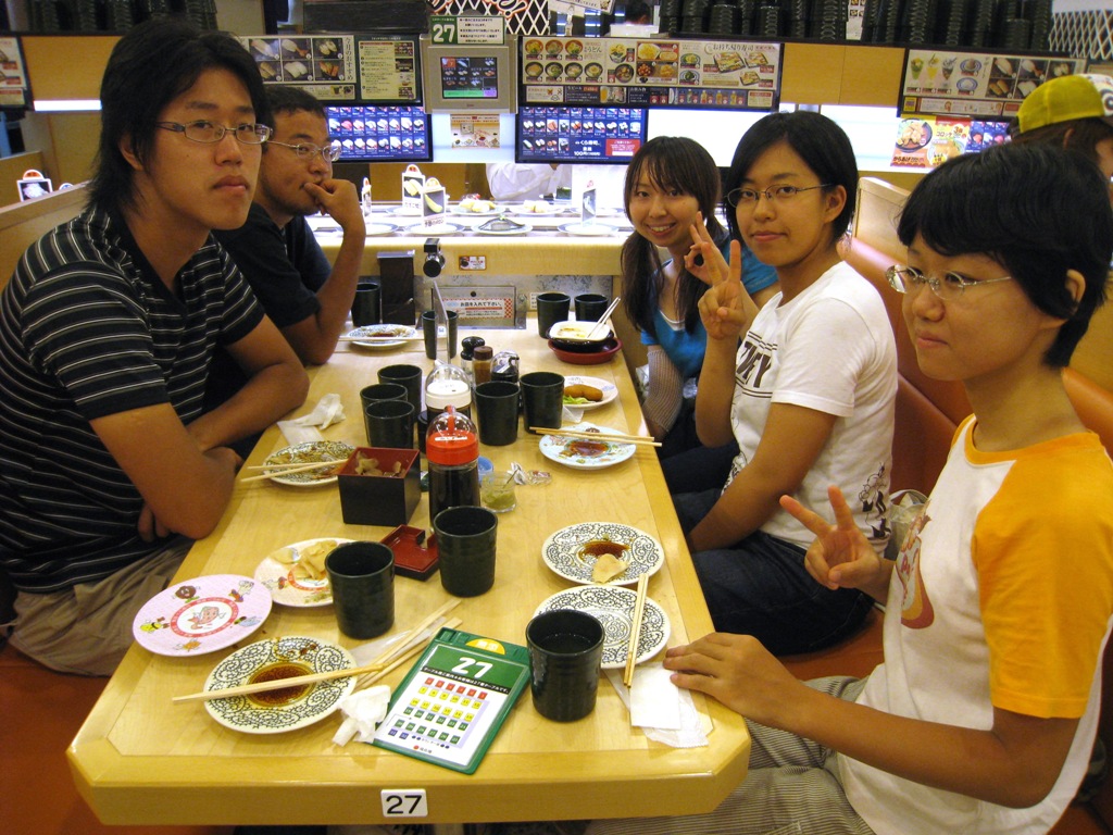 ・21:00、くら寿司で慰労会(右)。最後まで残ったこの5人に拍手!